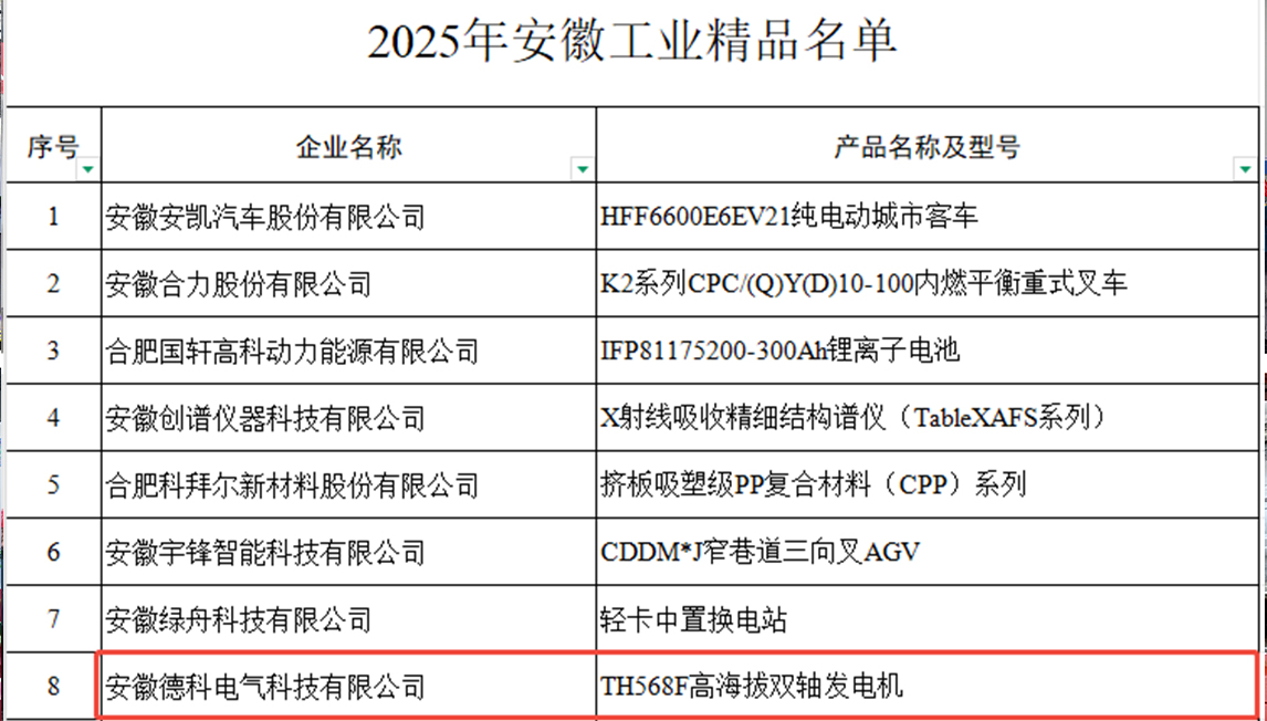 In December 2025, EvoTec’s TH568F high-altitude double bearing generator was selected as one of the “Anhui Industrial Premium Products 2025.” This selection represents authoritative